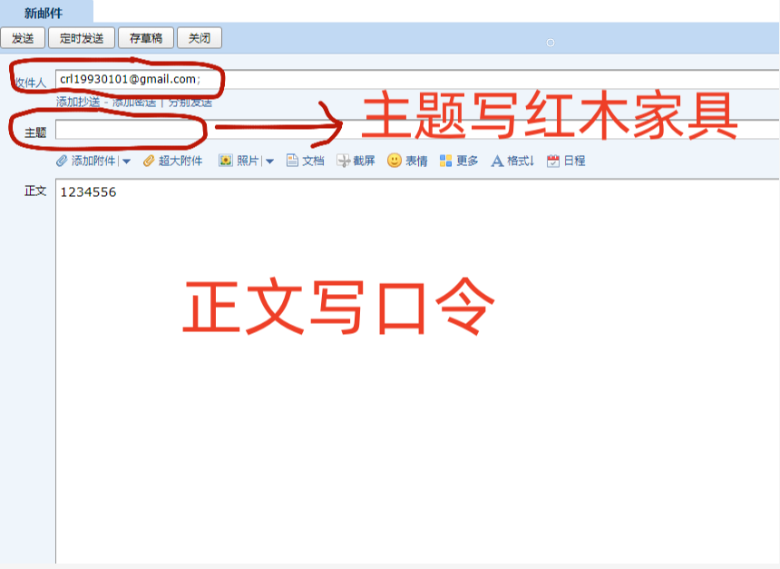 第五步(使用您的邮箱如上图所示将您设置的口令发送到客服邮箱即可)